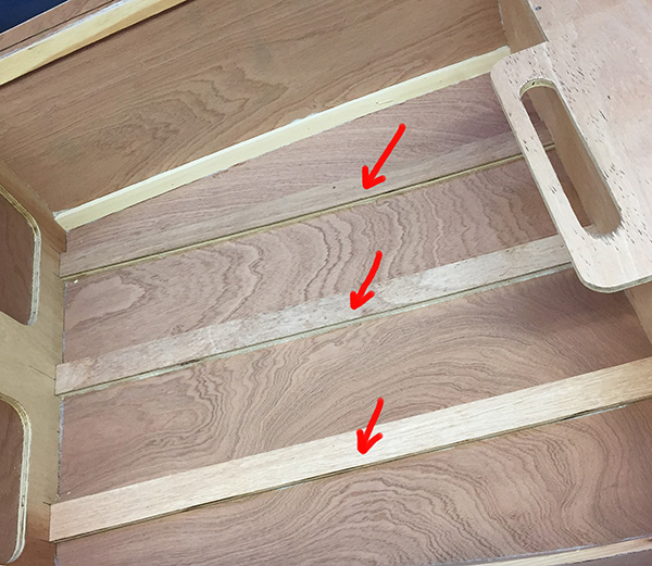 Als de boot op het droge staat, kun je de bodem beschadigen als je er toch in gaat zitten.! - Als je boot in het water ligt en je wil aan boord stappen; zet dan je voeten op de bodemlatjes (zie foto), die kunnen jou makkelijk dragen!